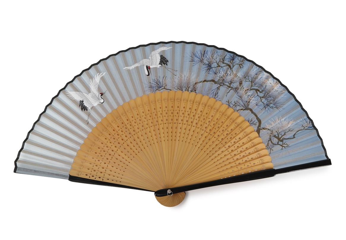 商品内容 縁起の良い鶴を扇面に描きました。塗り骨で高級感があります。